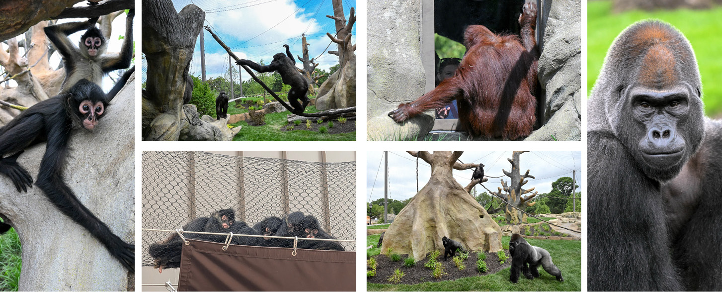 We are excited to share the new primate indoor/outdoor habitats that span nearly three acres at Brookfield Zoo Chicago! Replicating the native environments of gorillas, orangutans and monkeys, Bramsen Tropical Forests includes four distinct habitats and climate zones inspired by regions of Africa, Asia and South America. The new space incorporates cutting-edge innovations in primate wellness to support the specific behavioral and physical needs of the Zoo’s primate residents.