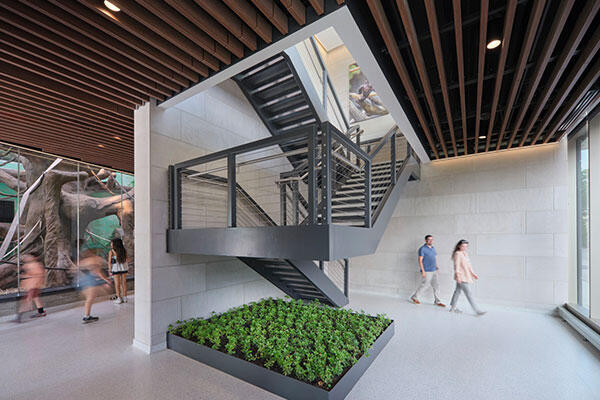 Work included constructing a new building to serve both a family and a bachelor group of critically endangered Western Lowland Gorillas. There are two indoor holding facilities and one allows for up-close visitor viewing. The second floor of the building is dedicated to the King Conservation Science Scholars Program. With its innovative, hands-on approach to leadership development that incorporates environmental literacy and inclusion, this program helps to cultivate the next generation of conservation-minded, community-driven leaders. There are training and event spaces with an outdoor terrace that provides an elevated vantage point for viewing the animals.