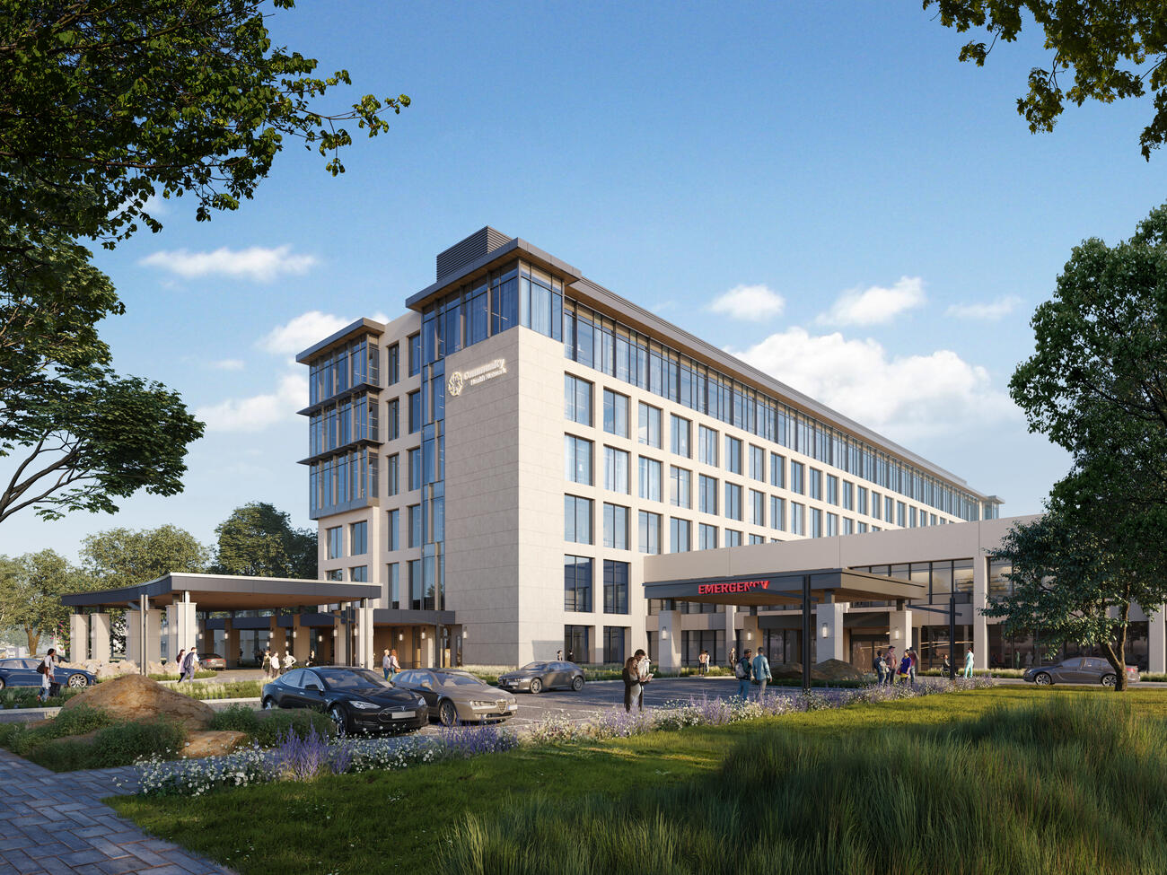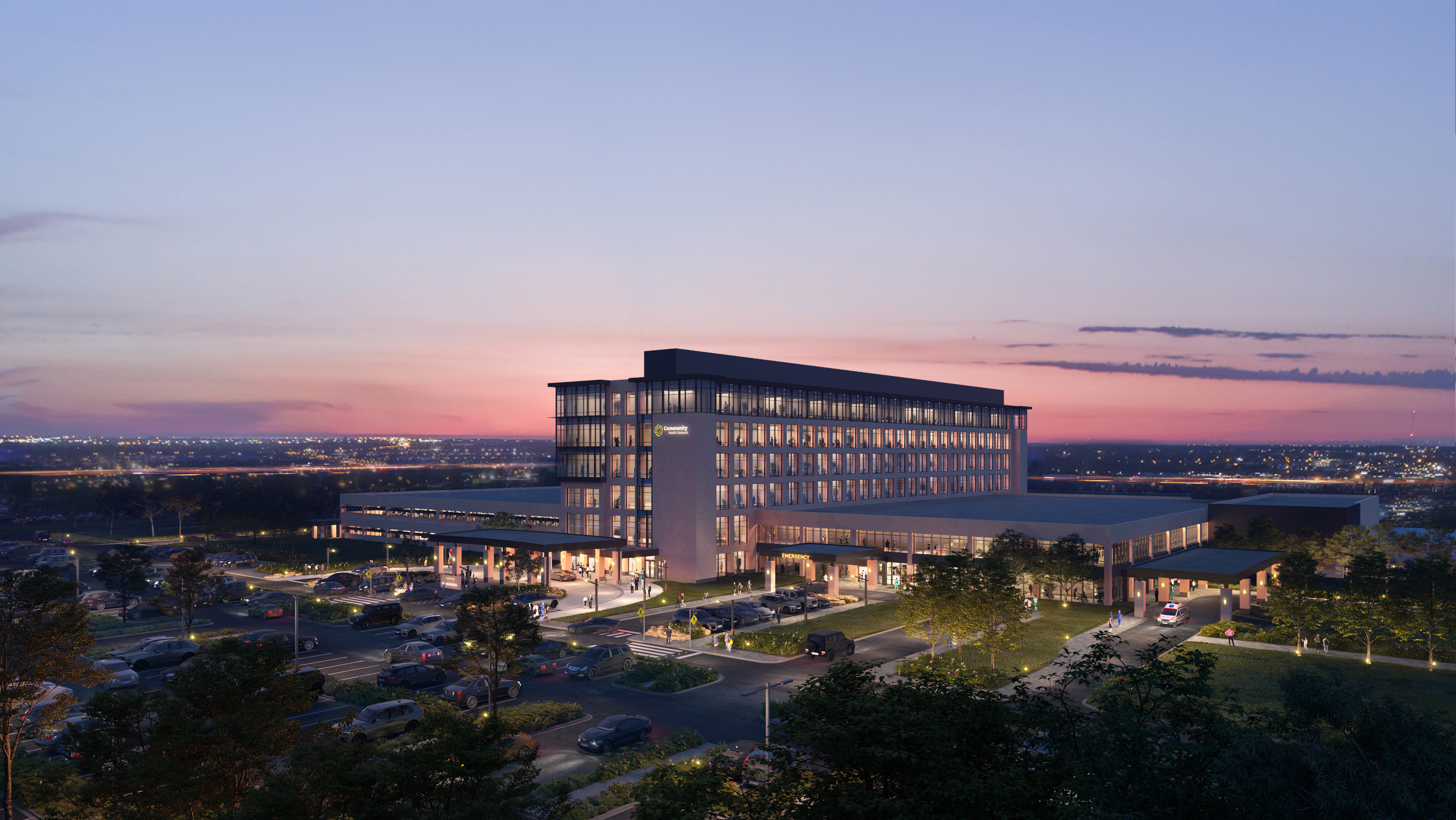 The Community Health Westfield Hospital Campus underwent a major renovation and expansion to enhance patient care and modernize its facilities. The 300,000-square-foot existing building was transformed with 150,000-square-feet of new hospital space, including four hospital ORs, seven ASC ORs, a cardiology suite with cath lab, an endoscopy/bronchoscopy suite, a 20-bed inpatient unit, inpatient pharmacy, dietary, central sterile processing, and more. A new 75,000-square-foot medical office building was also added, along with a five-story, 120,000-square-foot bed tower featuring 80 inpatient beds across two 40-bed units. A new connector atrium links the existing structures with the bed tower, creating a cohesive, modern campus designed to support patient-centered care and operational efficiency.