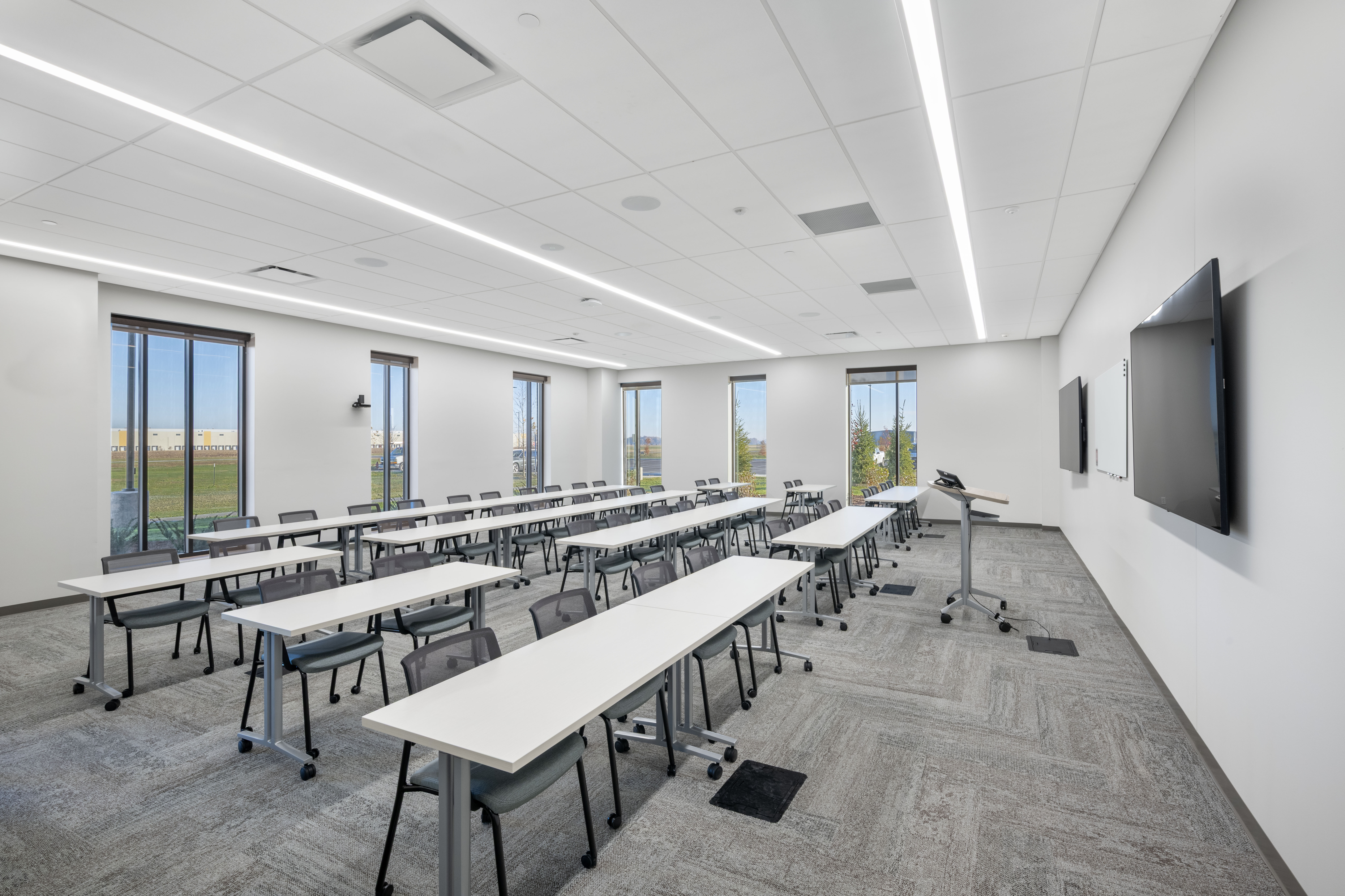 The IU Health Lifeline Headquarters project delivered a centralized, state-of-the-art emergency medical services facility supporting both air and ground operations. The completed facility features administrative offices, education and training spaces, ground and air fleet maintenance areas, in-service vehicle storage, warehouse space, and advanced communications infrastructure. Designed to improve operational efficiency and emergency response coordination, the new headquarters consolidated IU Health Lifeline operations previously housed at Gasoline Alley and the downtown Heliport, strengthening readiness and lifesaving capabilities across the region.